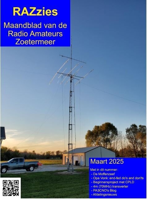 Met in dit nummer: – De Moffenzeef – Opa Vonk: end-fed do’s and don’ts – Beginnersproject met CPLD – 4m (70MHz) transverter – PA3CNO’s Blog – Afdelingsnieuws.
